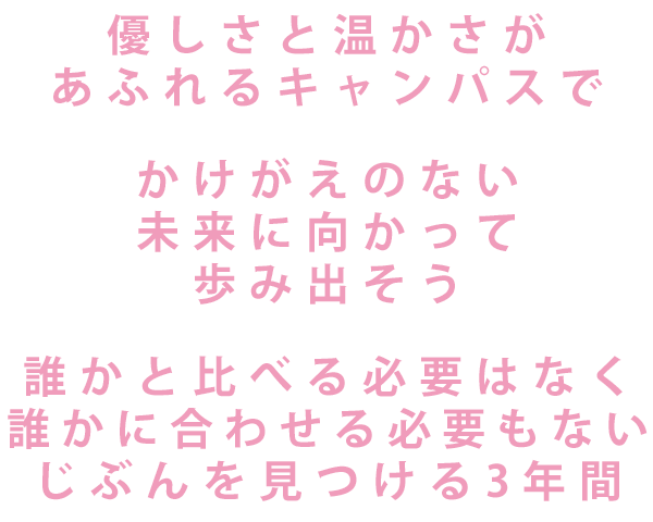 大切な高校生時代を安心して過ごせる環境でいろいろなことにチャレンジしてください。